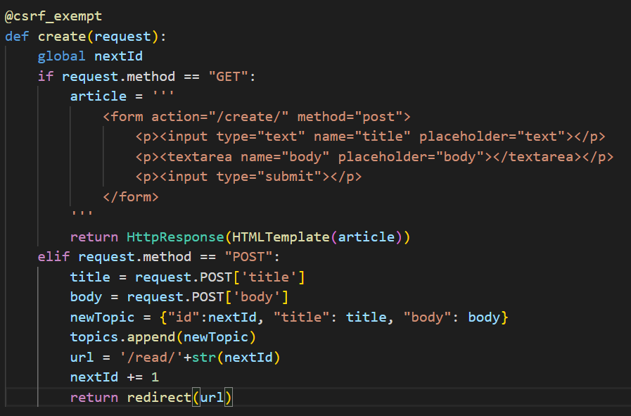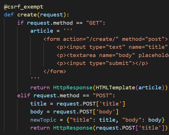 우회하고 싶은 함수 위에 @csrf_exempt 를 달아주면 된다.
