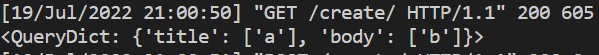 그러면 터미널에 딕셔너리형태로 값이 들어감을 알 수 있다.