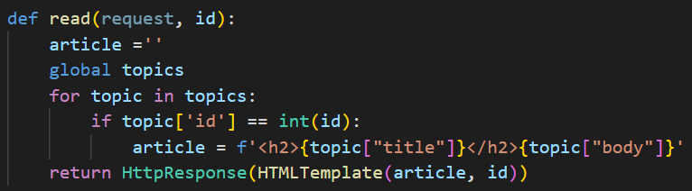 read페이지의 template에 return 값에 id값을 넣어준다.