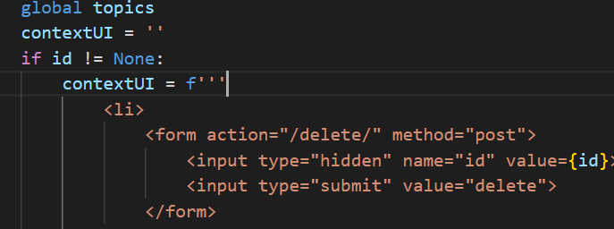 id가 None이 아닐때, 즉 홈페이지가 아니라 세부 페이지 항목에 들어갔을 때만 delete 버튼이 활성화되도록 바꿔주는 작업까지 하면 완료된다.