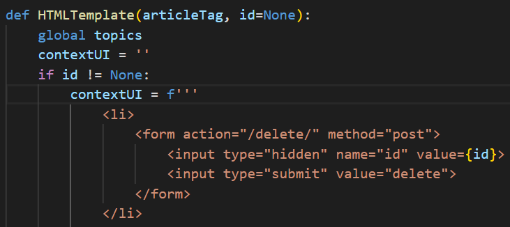 하지만 다른 페이지의 return 값엔 id값이 없고, HtMLTemplates에서는 id파라미터를 받으므로