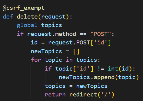 그리고 id값과 topic아이디 값이 같지 않은 인자들을 newTopics에 이를 추가해주고,