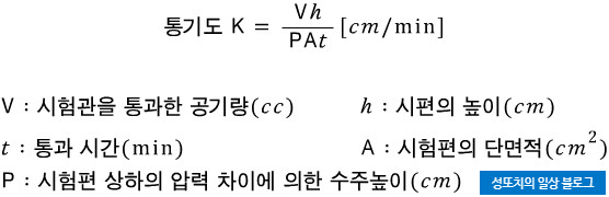 : 시험편을 통기도 시험기에 넣어 일정 압력으로 한쪽에서 2000cc의 공기를 보낼 때 일어나는 공기 압력의 차이와 그 시간을 측정하여 구한다.