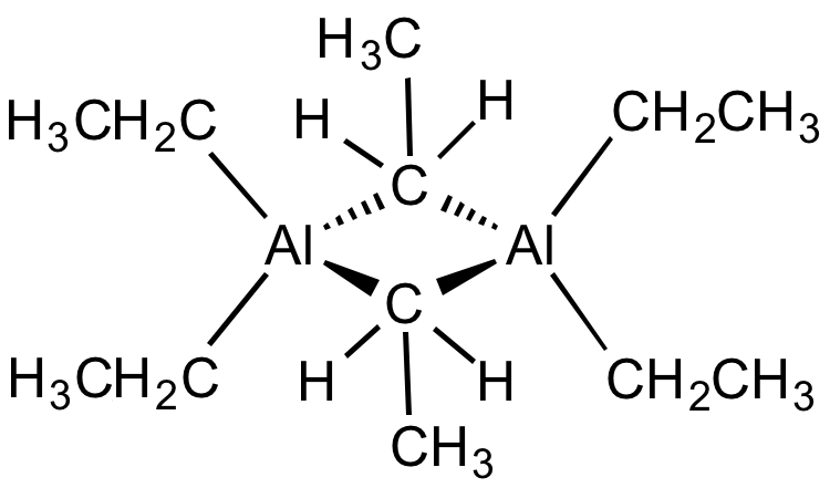 트리에틸알루미늄은 알킬알루미늄 중 대표적인 예로서, 세 개의 에틸이 알루미늄에 결합된 구조다.