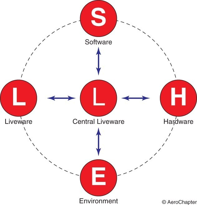 '호킨스(Hawkins, 1975)'는 '에드워드(Edward, 1972)'가 고안한 기존의 "SHEL 모델"을 수정하여 새로운 "SHELL 모델"을 그림과 같이 제시하였다. 이는 많은 항공기 사고에서 밝혀진 원인을 뒷받침할 수 있는 이론적 근거를 제공하는 유용한 수단이 되었다. 또한, 국제민간항공기구(ICAO)에서 추진하는 인적요인에 대한 이론적 모태가 되기도 하였다.