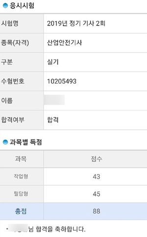 먼저 합격 인증부터 하겠습니다. 필기는 평균 85점, 실기는 작업형 43점 필답형 45점 총 88점으로 합격했습니다.