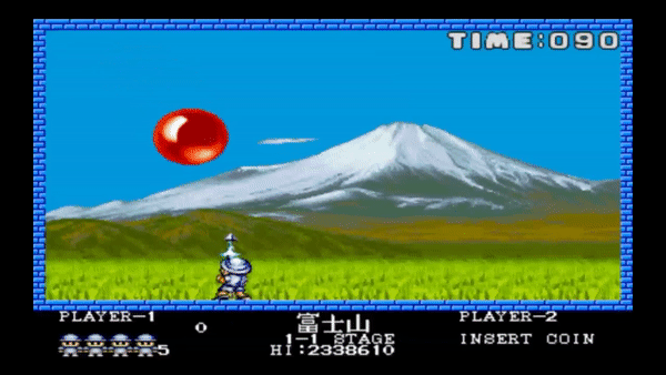 팡게임이란 아래 이미지처럼, 끊임없이 튕겨지는 공들을 무기로 없애주는 게임입니다. 공들은 무기에 의해 타격될 때마다 이전 공의 반 사이즈로 줄어들며, 2개로 분열합니다. 그리고 세 번째로 분열된 공이 부서지면 공은 아예 없어지게 됩니다.