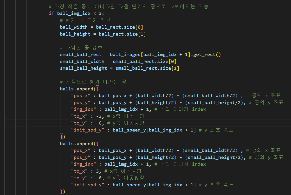 ball_img_idx를 이용해 해당 공의 크기를 구하고, 이를 통해서 나뉘어지는 공의 정보값을 전달받네요.