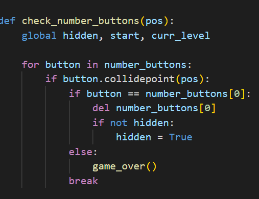 또한 이번 게임에서는 저번까지는 colliderect를 이용해 서로의 범위에 충돌하는 조건으로 이벤트가 실행이 됐지만, 이번에는 마우스 포인터로 하는 게임이므로 마우스 버튼을 눌렀을 때 collidepoint 로 click_pos가 일어나게 변수를 지정해주어,
